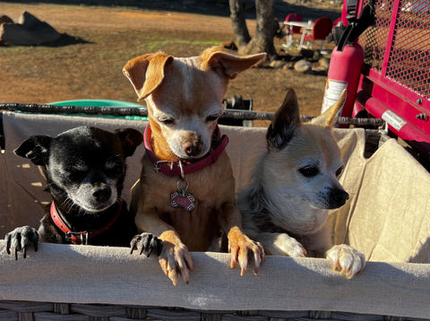 Our potbelly pigs were RNR’s first rescues at the ranch in 2021. The three little black pigs (aka The three little Pigs) were rescued from an extreme hoarding situation (reportedly 200 kept in close, unsanitary quarters) by our partners at Farm Animal refuge. Robin’s Nest is their forever home. Our pigs love belly rubs, and their favorite treat is ripe bananas. We like to interpret their constant chatter!
